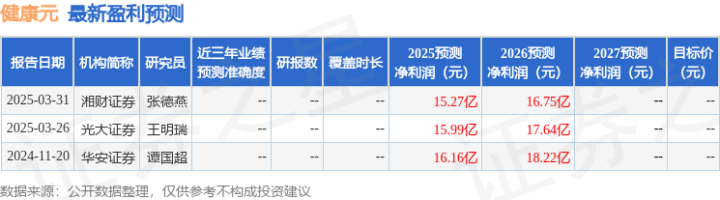 最新盈利预测明细如下: